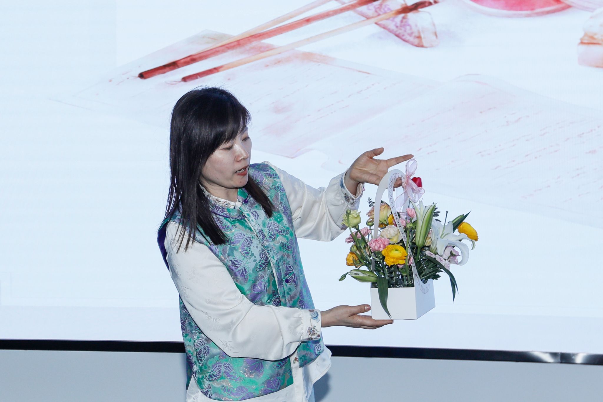 活动邀请农林科技学院李常英副教授为女教职工做插花知识讲解。李常英是农林科技学院《插花与花艺设计》课程教师,美国花艺学院花艺师,一直研修欧式花艺和中国传统插花,多次参与职教周插花展示等社会服务活动,指导学生参加山东省职业院校技能大赛“花艺”项目多次获奖,并获得“优秀裁判”“优秀指导教师”称号。李常英用通俗易懂的语言描述鲜花特性,讲解插花的艺术造型要素和技巧手法,通过生动演示、循循善诱,激发女教职工的创作灵感。活动现场芳香馥郁、浪漫怡人,点燃了女教职工的学习热情,大家边看边学,边交流边探讨,共同分享插花的乐趣。