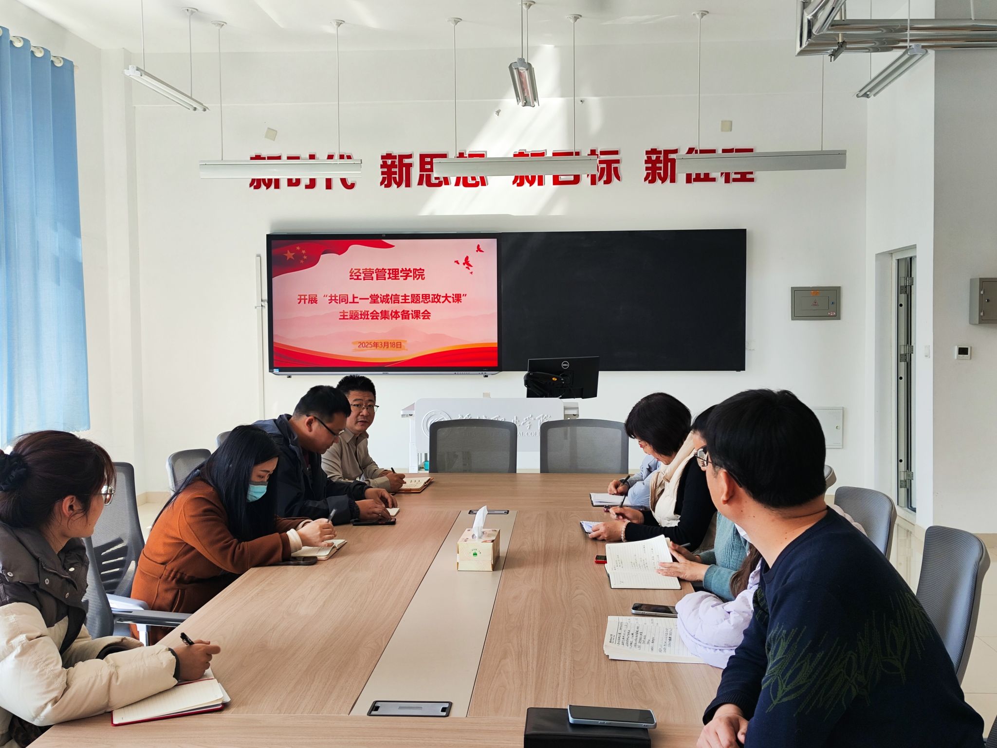 为提升立德树人实效,推进校园诚信文化建设,增强学生诚信意识,开好诚信主题思政大课主题班会,经营管理学院于3月18日开展“同上一堂诚信主题思政大课”集体备课会,经营管理学院全体辅导员参加了备课会。