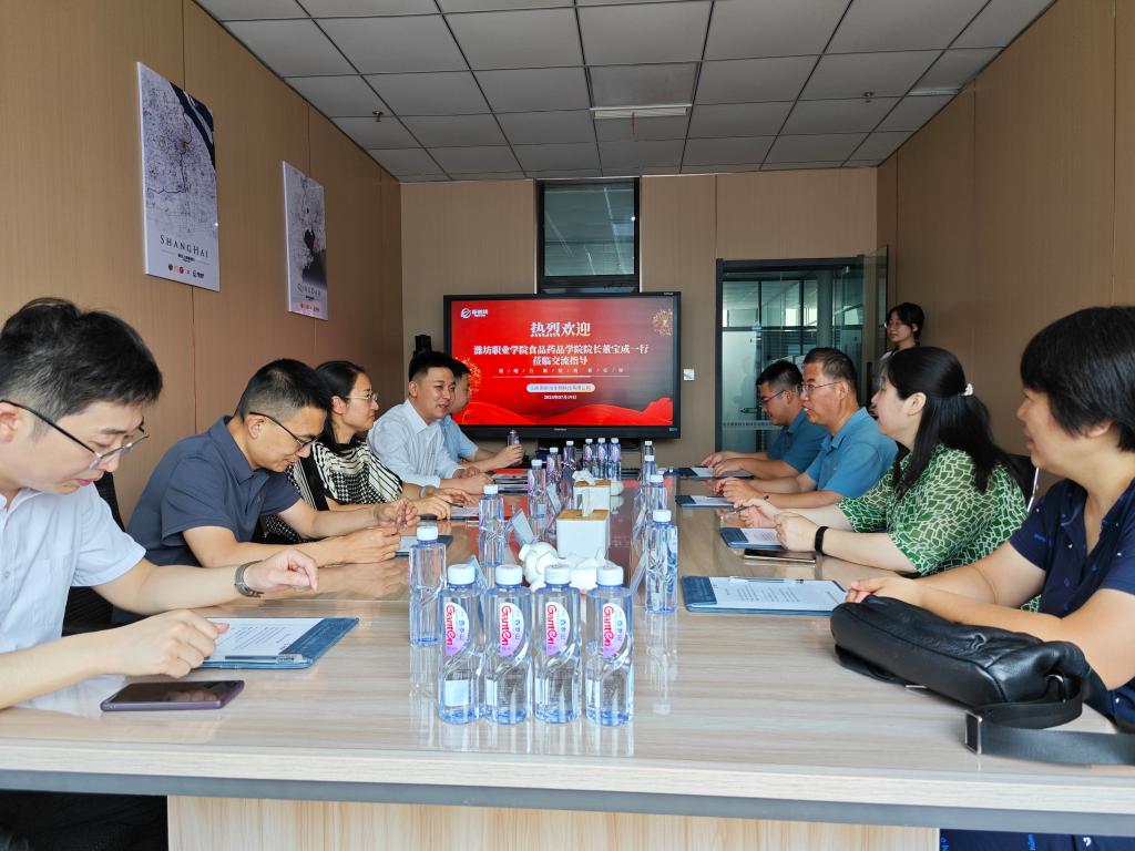 活动过程中,食品药品学院主要负责同志介绍了相关专业的基本情况、实训室建设、学院人才培养、办学成果及学生实习就业等情况。山东新航线生物科技有限公司董事长王国强向团队介绍了企业发展、主营业务及用人需求等,带领团队参观了具体工作岗位及工作实际情况,并对学院学生来企业实习表达了充分的欢迎,愿意进一步深化与学院的产学研合作,提供更多优质的实习岗位和就业机会。随后,校企双方详细讨论了学生的实习岗位设置、薪资待遇以及职业发展规划等具体问题,就开展产学研融合达成合作意向。