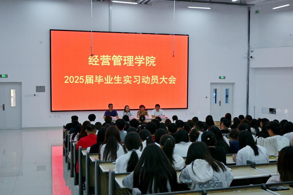 6月27日,经营管理学院在智泽2号楼A117召开2025届毕业生实习动员大会,经营管理学院主要负责同志、分管教学负责同志及相关科室负责人参加。