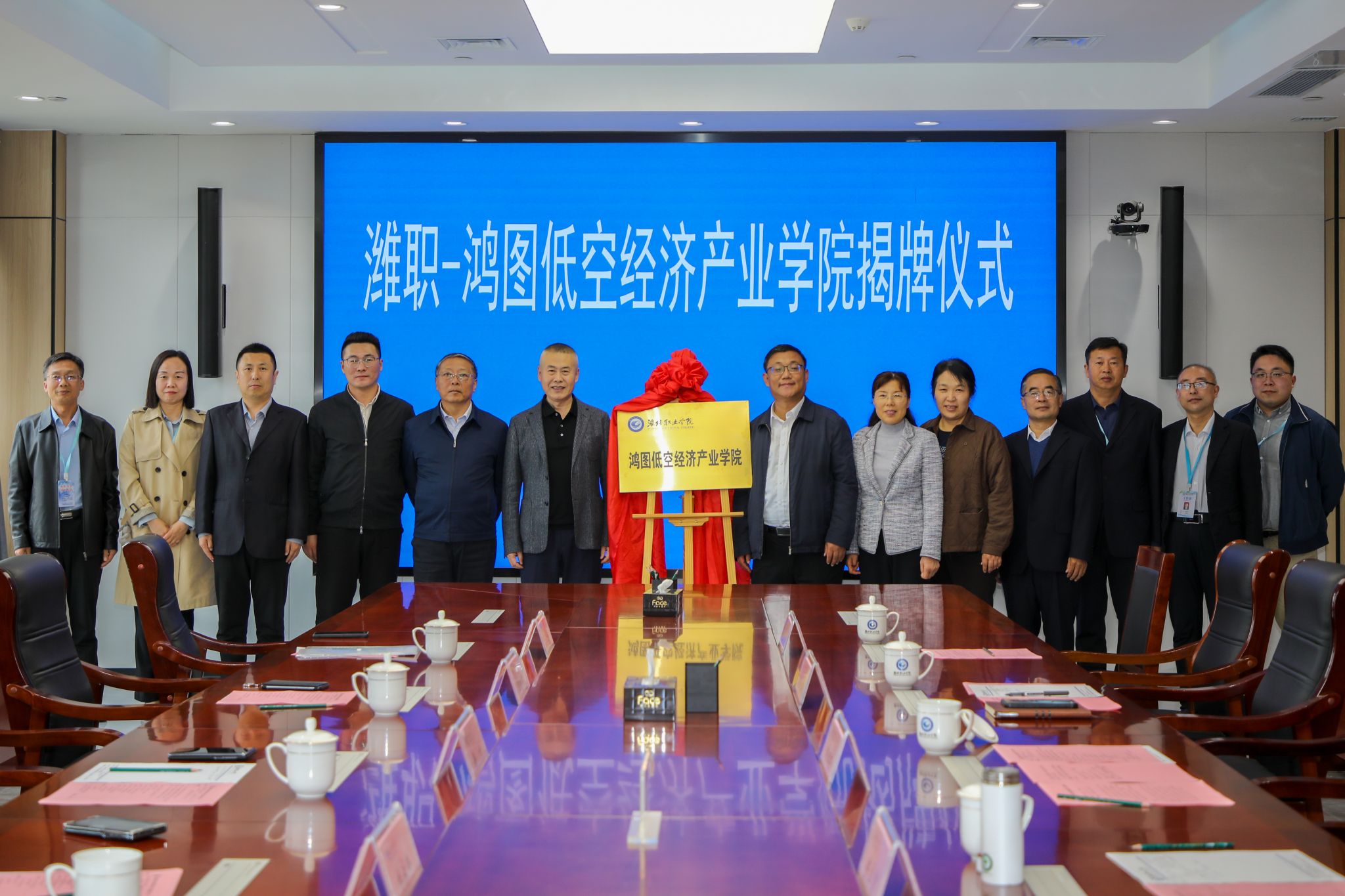 10月27日下午,天津鸿图航空科技集团有限公司总经理徐州一行4人到学院洽谈合作,双方签订战略合作协议,并共同为鸿图低空经济产业学院揭牌。学院党委副书记韩瑞东,副院长陈美霞,党委委员、宣传部部长鞠桂芹,以及科技处、教务处、相关二级学院负责人参加揭牌仪式。